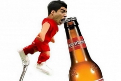 Предприимчивые китайские умельцы создали креативную открывалку для бутылок, имеющую вид уругвайского футболиста Луиса Суареса, нападающего «Ливерпуля» и национальной сборной Уругвая.