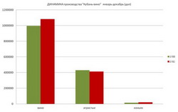 ООО «Кубань-вино» подвело итоги производства в 2012 году. За этот период предприятием было произведено 1 515 506 декалитров продукции, из них – 1 008 1641 декалитров тихих вин, 412 995 декалитров игристых вин и 20 869 декалитров коньяка.